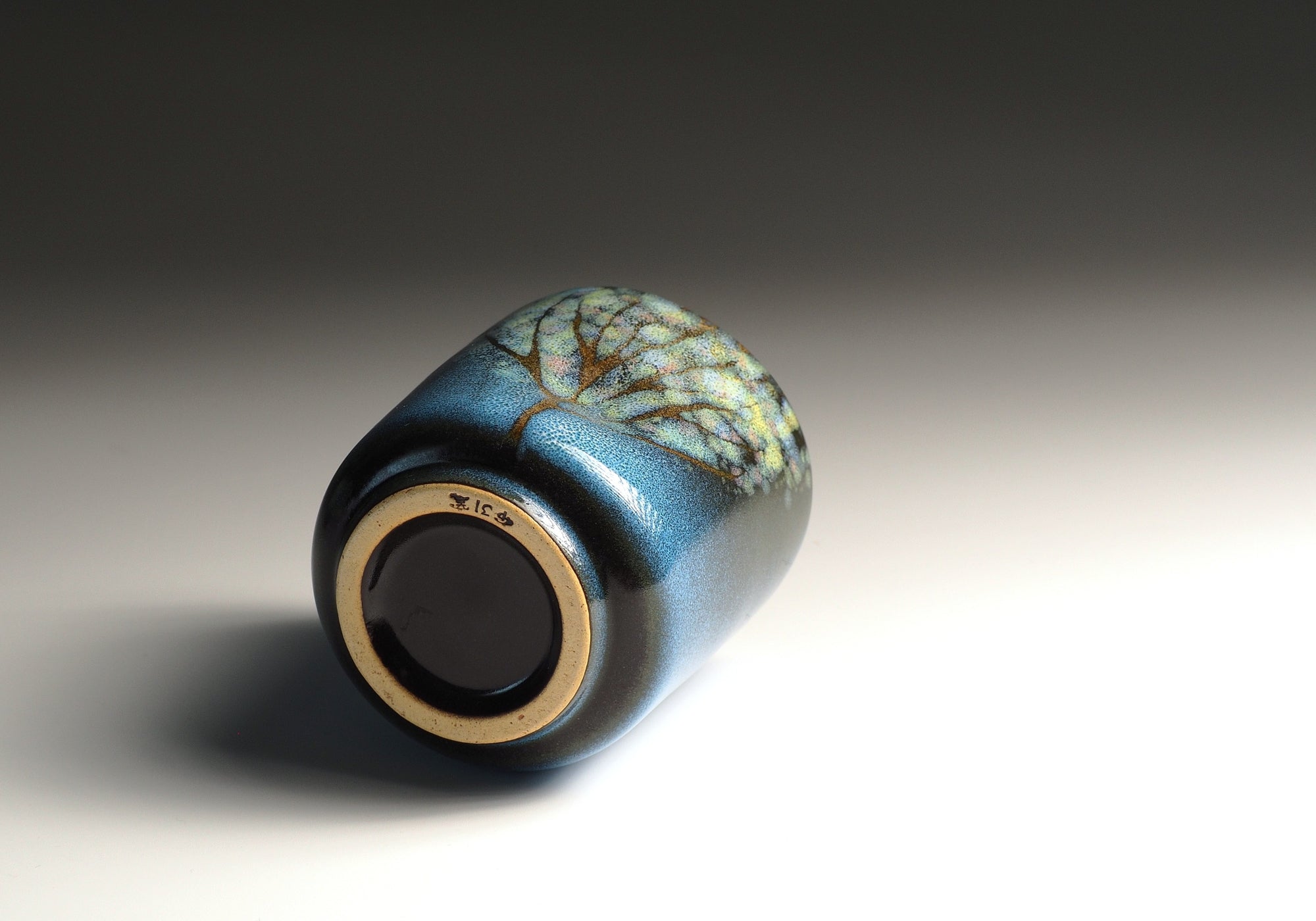 Master potter Kazuhiro Kojima handcrafts this yunomi and applies the Nanasai Tenmoku glazing technique to build contrasts and gentle highlights that shift subtly as the cup turns in the light.