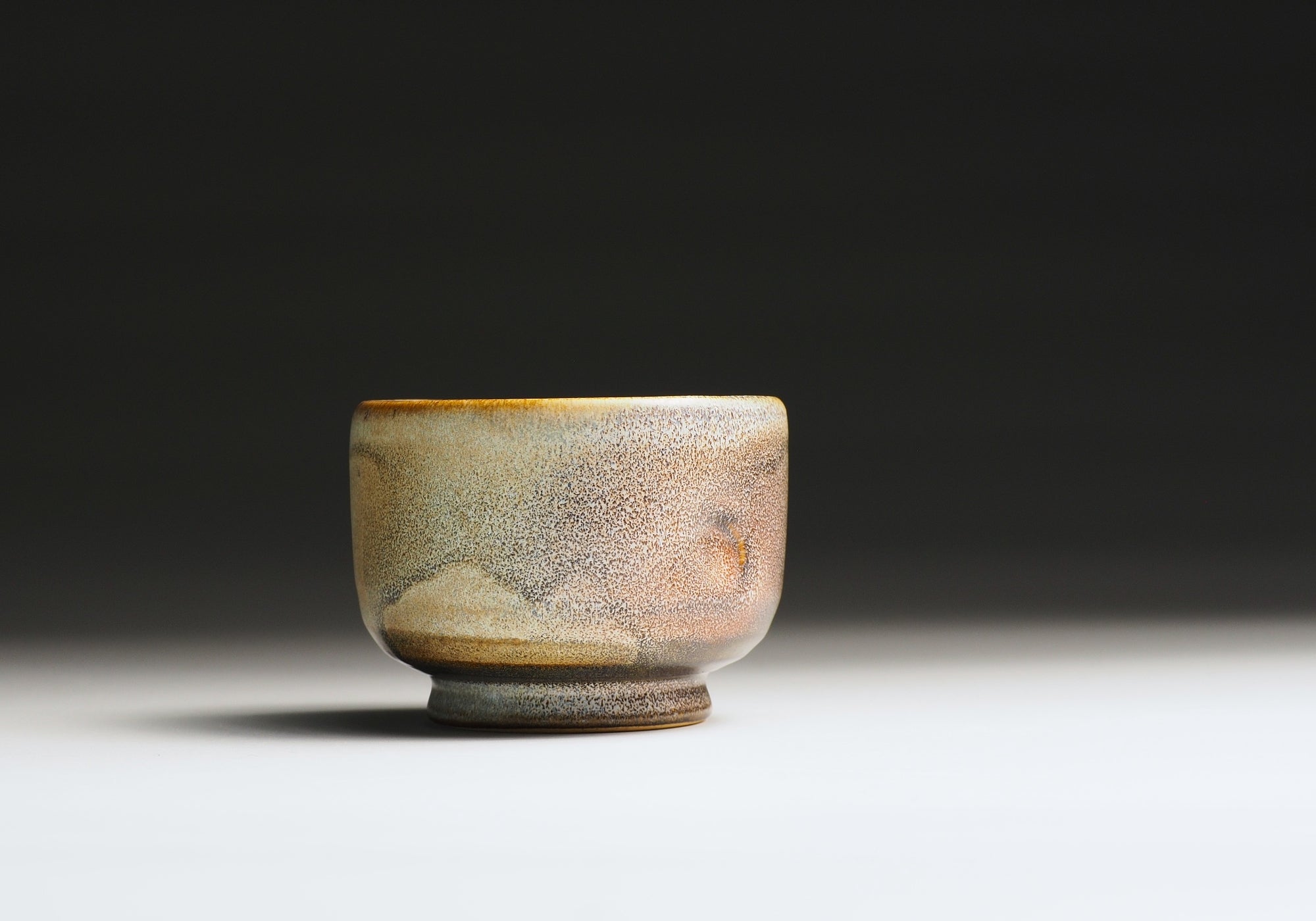 Hand-shaped by master potter Kazuhiro Kojima, each cup is finished with the Nanasai Tenmoku glazing technique, a complex process that layers pink, ivory, and earthy tones into a surface that feels alive yet restrained.